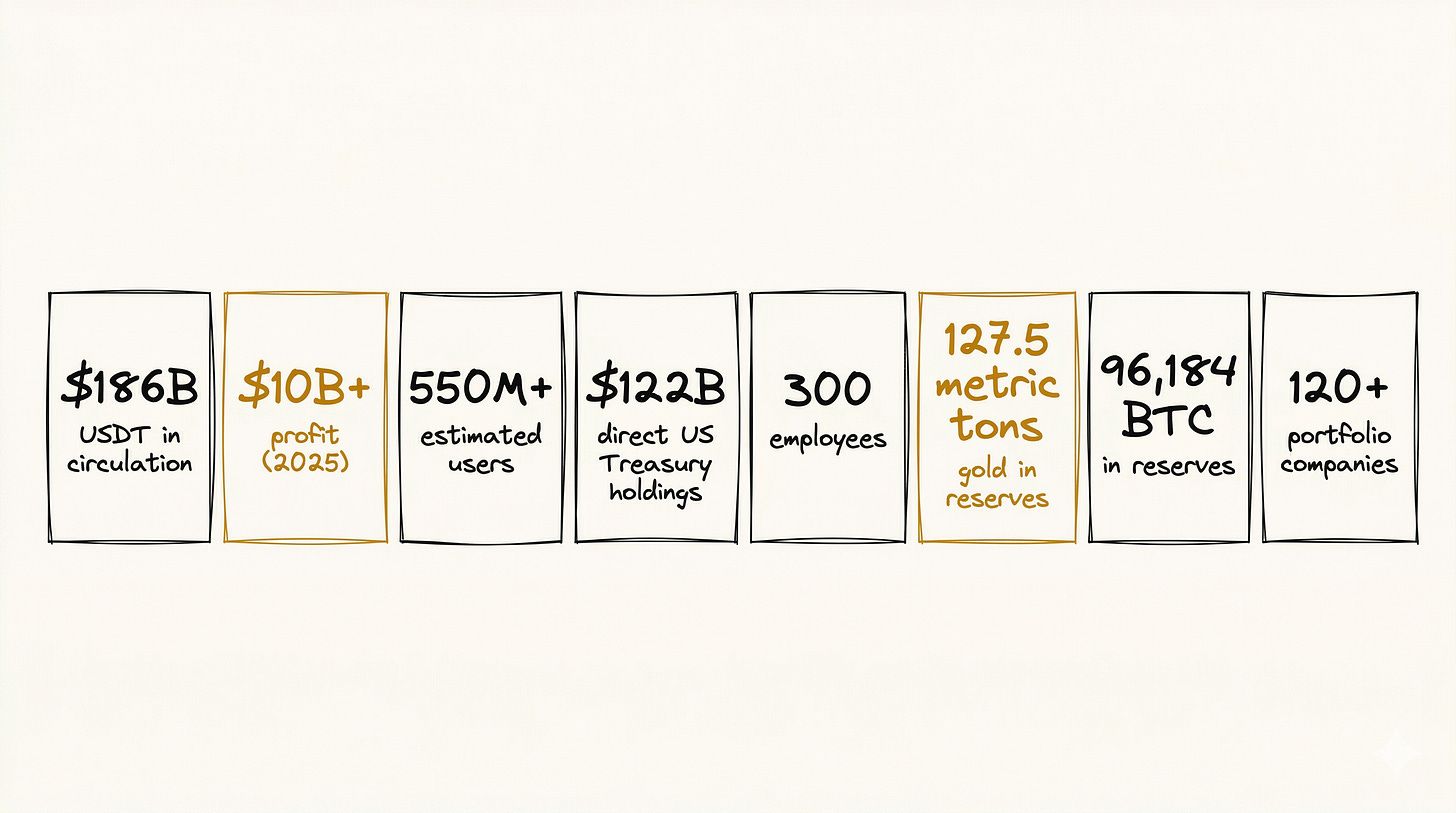 Most people’s understanding of Tether is three to five years out of date. A woman walks into a phone credit kiosk to buy airtime. The kiosk is owned by Tether.North Carolina, a former White House official, is running a federally regulated stablecoin backed by US Treasuries and custodied by Cantor Fitzgerald. That's also Tether.A publicly traded agricultural conglomerate just had its board replaced by a company that didn't exist twelve years ago. Also TetherThe crypto press still treats it as a stablecoin issuer with trust issues. The mainstream press still treats it as a possible fraud. Neither frame explains what Tether actually became while everyone was busy arguing about the old version.What I found is a company that generated over $10 billion in profit last year with just 300 employees, holds more US Treasuries than Germany, and is quietly building a technology conglomerate funded entirely by the interest on other people's dollars.